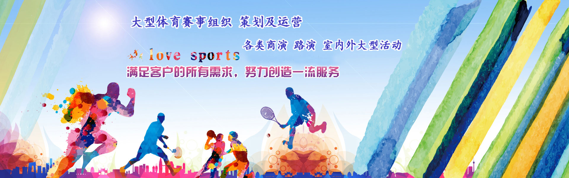 们有能力承办承接各类大型体育赛事:业余赛、邀请赛、友谊赛、联赛、赞助性赛事;与体育相关的活动策划;主办、协办大型专业赛事;策划和承办公司体育赛事策划、企业运动会、社区体育竞赛;为各类体育组织提供比赛。